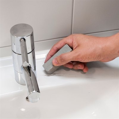 Rengöringskapaciteten kommer att ökas genom tillsats av vatten. Lämplig för emalj ytor såsom badkar, duschar, bassänger samt keramikplattor. Skrapar inte ytan. Inga kemikalier behövs.