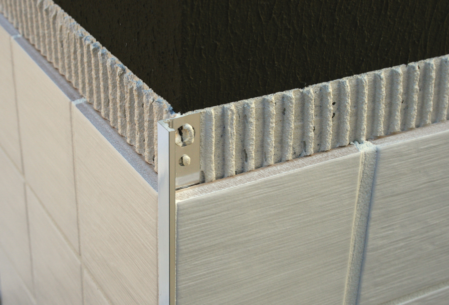 Kakellist i mässinglackad aluminium med L-profil.