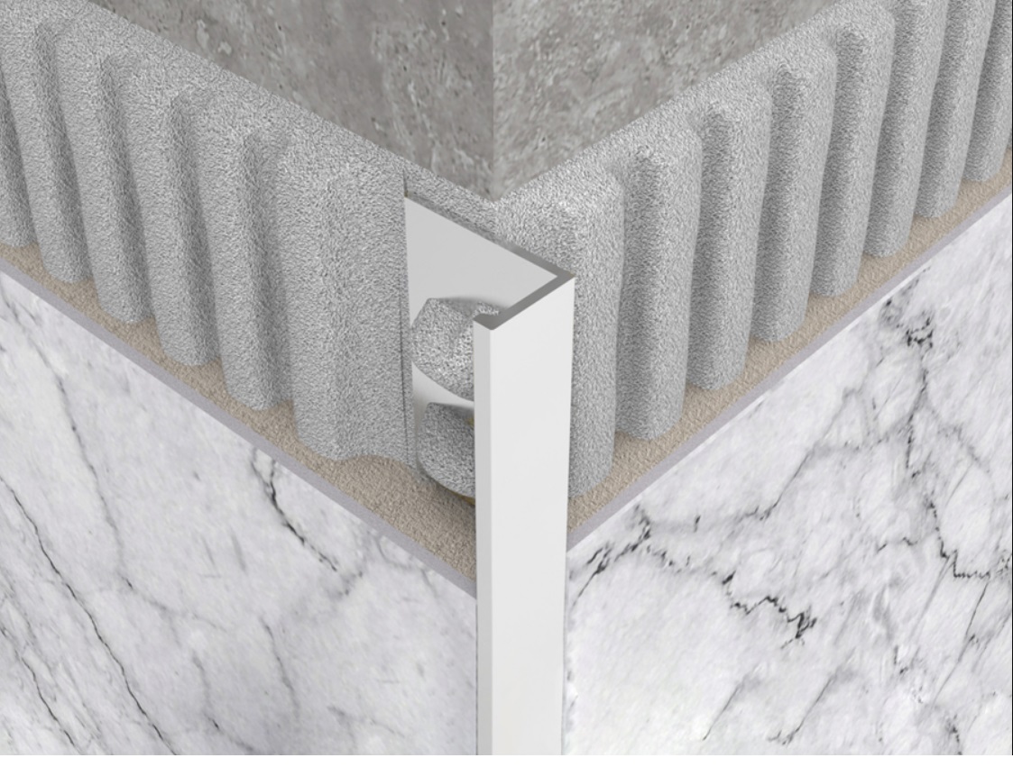 Kakellist i aluminium med L-profil. Kan användas som hörnlist, dekorlist eller avslutningslist.