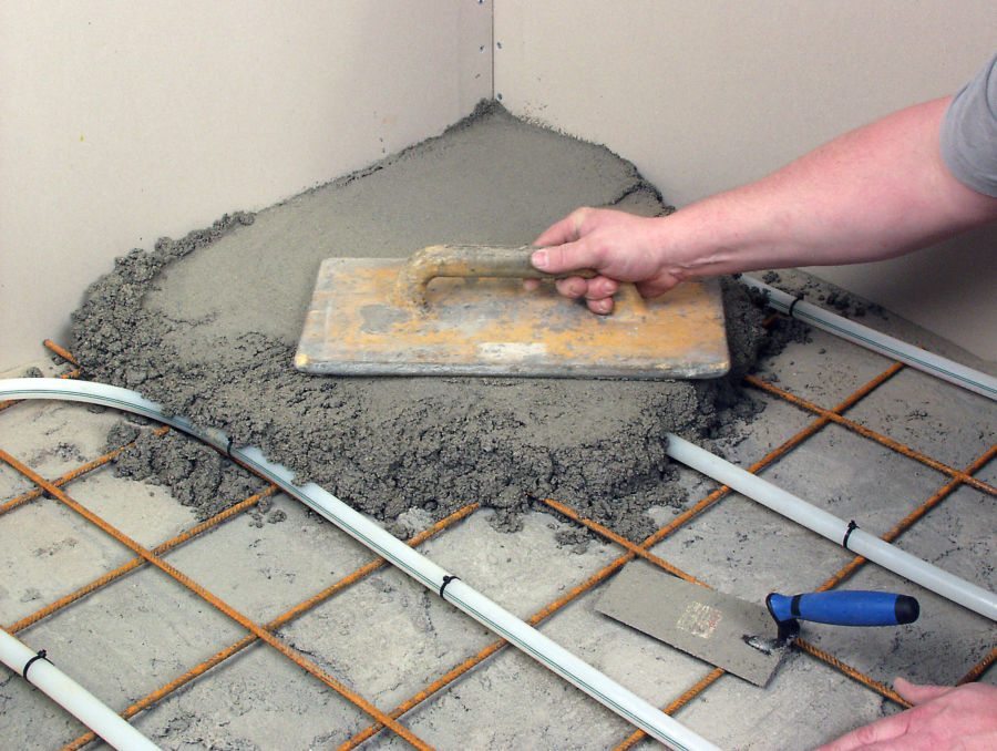 Snabbhärdande slipsats med kontrollerad krympningför pågjutning av våtrumsgolv o liknande.
