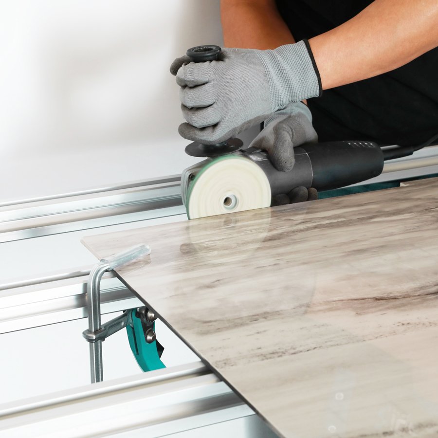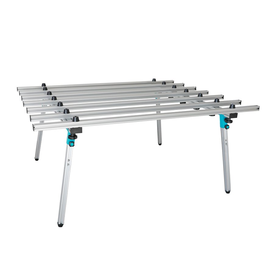 Robust och stabilt arbetsbord för storformatiga plattor. Tillverkad av aluminium. Längsgående skåror för kapning. Monteras enkelt isär vid transport och förvaring. Kan monteras ihop med ytterligare bänk för ökad arbetsyta.