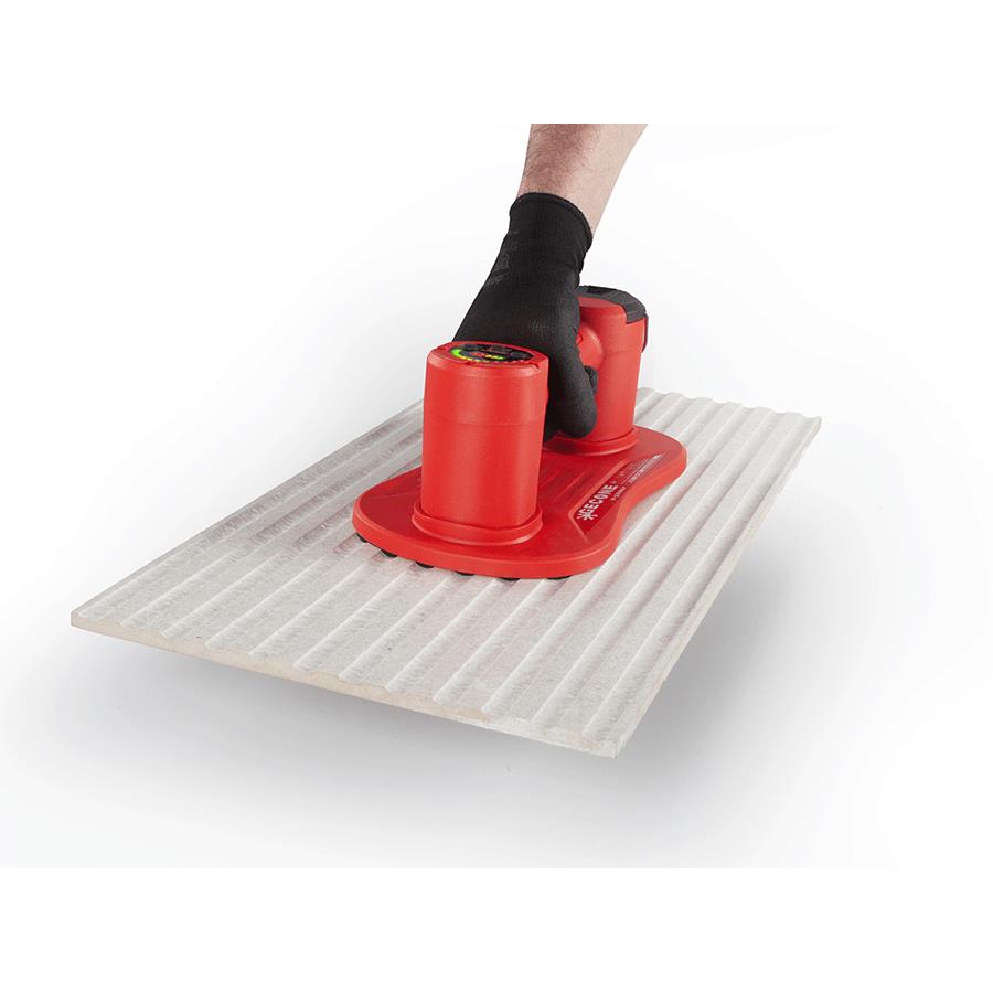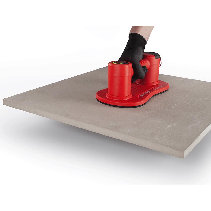 Batteridriven och extremt stark plattlyft för många olika typer material som t.ex. kakel, klinker, granitkeramik, natursten, marksten och glas. Undertrycksövervakning via visuell LED-färgskala. Automatisk övervakning av vakuumtrycket. Vid förlust av vakuumtryck startas pumpen automatiskt tills trycket har återställts. Behåller undertrycket även när batteriet tas bort vid batteribyte. Batterisyrkan indikeras med LED-färgskala.