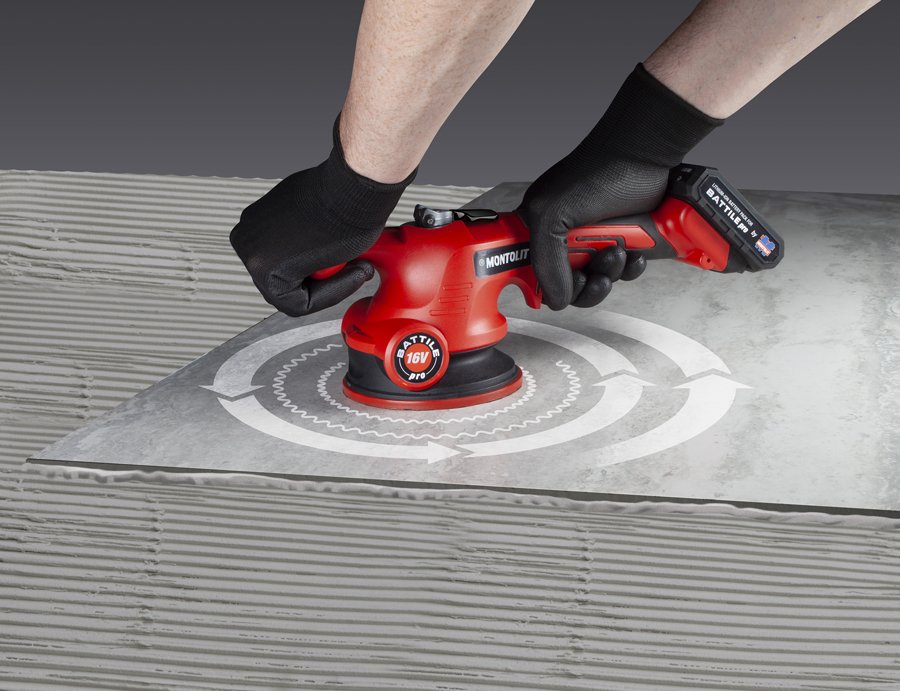 Vibrerar ut luft under plattorna och förbättrar vidhäftningen.