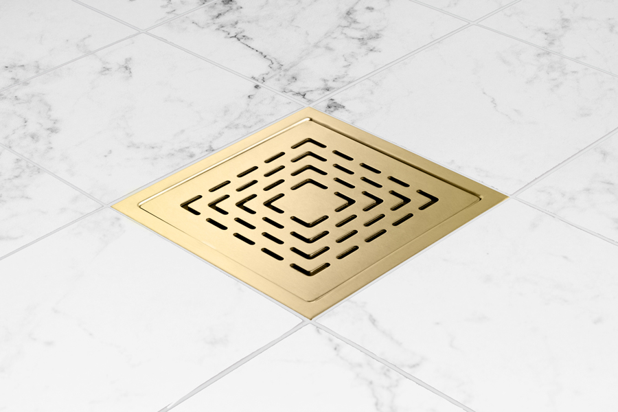 Elegant golvbrunnssil av äkta mässing. Godstjocklek ram: 3,5 mm. Godstjocklek sil: 2,5 mm.