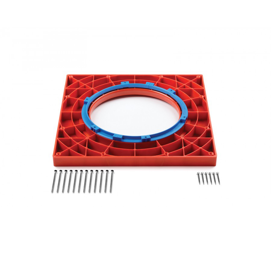 Används vid montering av Jafo golvbrunnar i träbjälklag. Tillverkad av PP-plast. Plattans håligheter fylls med avjämningsmassa vilket gör att den integreras i golvkonstruktionen. Kan användas både till klinker- och plastgolv.